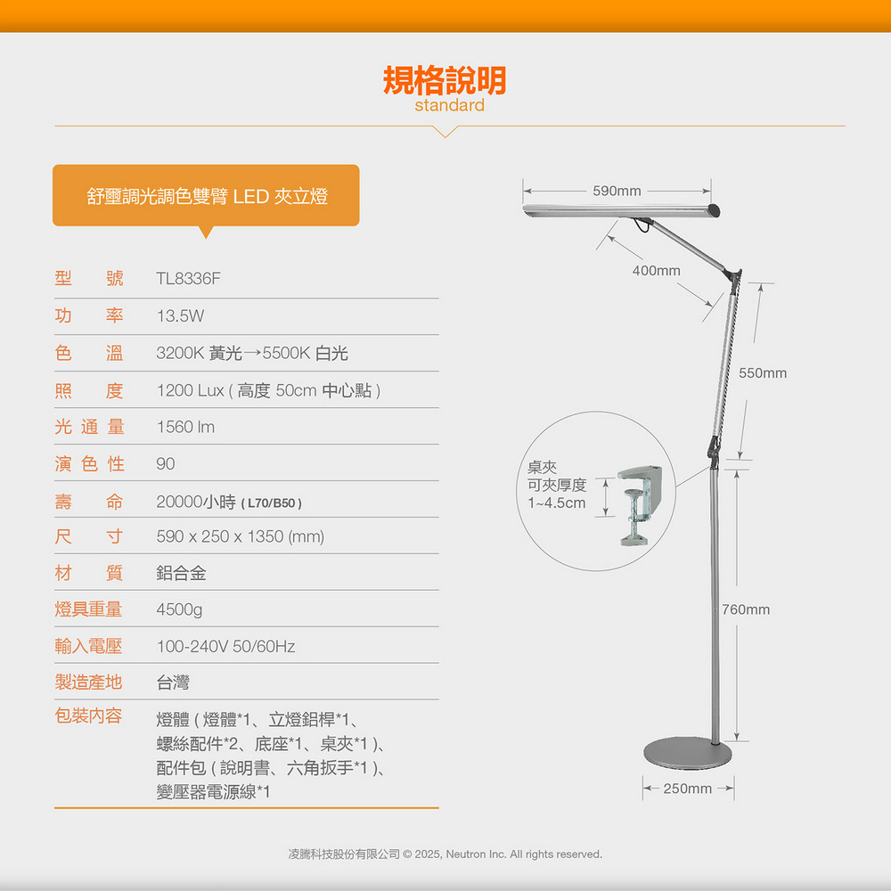 - AA級照射範圍,符合CNS 16048 【讀寫作業檯燈】